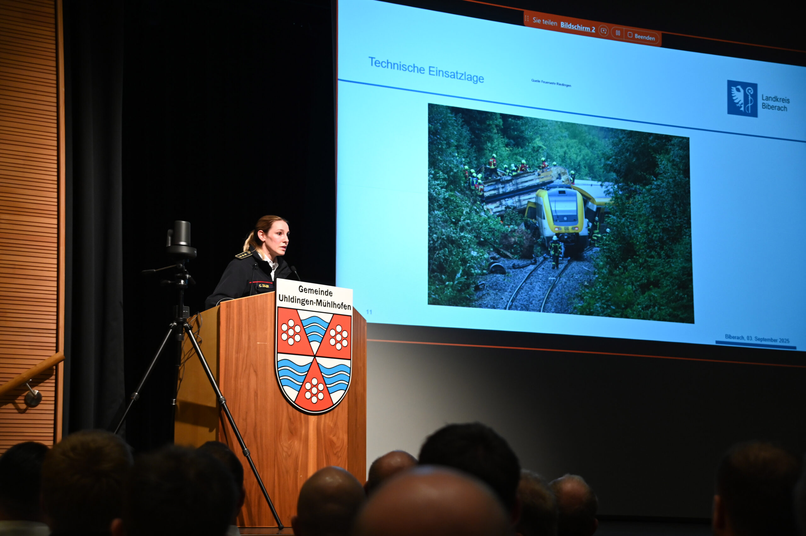 Zum Zugunglück bei Riedlingen im Juli 2025 berichtete Charlotte Ziller, Kreisbrandmeisterin des Landkreis Biberach, über die Maßanahmen der Feuerwehren bei diesem Großeinsatz, aber auch persönliche Eindrücke aus Sicht der Einsatzleiterin.