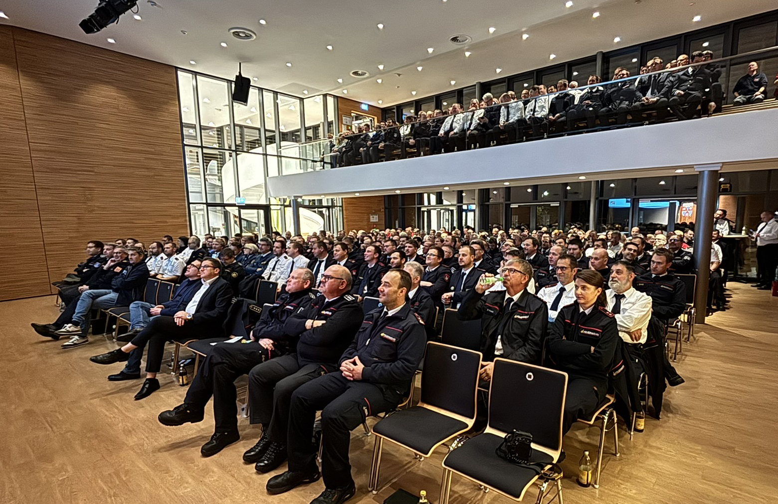 Fest etabliert hat sich die Weiterbildungsveranstaltung des Landratsamt Bodenseekreis für Feuerwehr-Führungskräfte. Zu der diesjährigen Vortragsreihe, die im Welterbesaal der Gemeinde Uhldingen-Mühlhofen am Freitagabend (7.11.2025) stattfand, hatten sich über 300 Führungskräfte aus den Feuerwehren des Kreises, aber auch Gäste aus den weiteren Blaulichtorganisationen angemeldet.