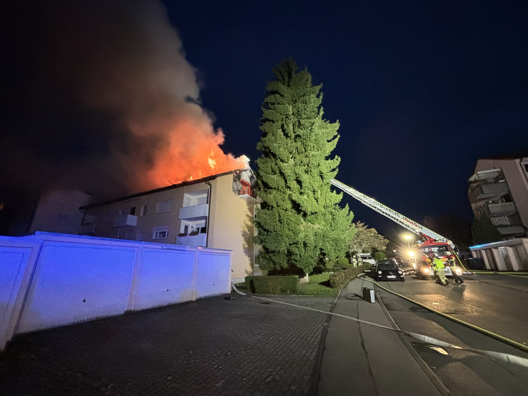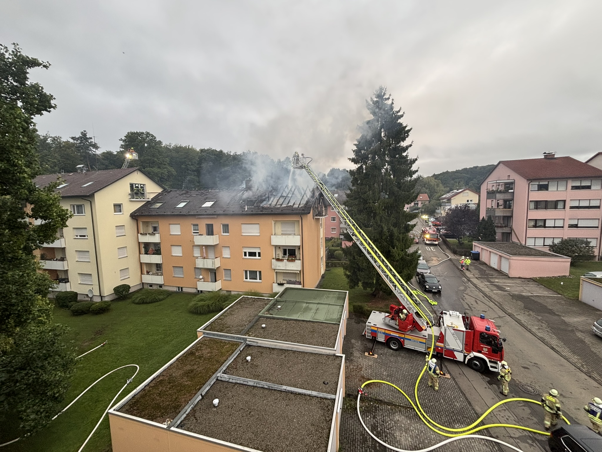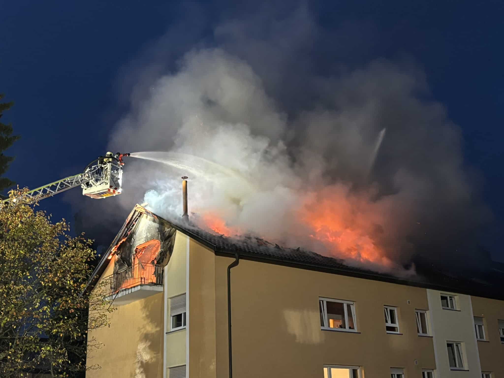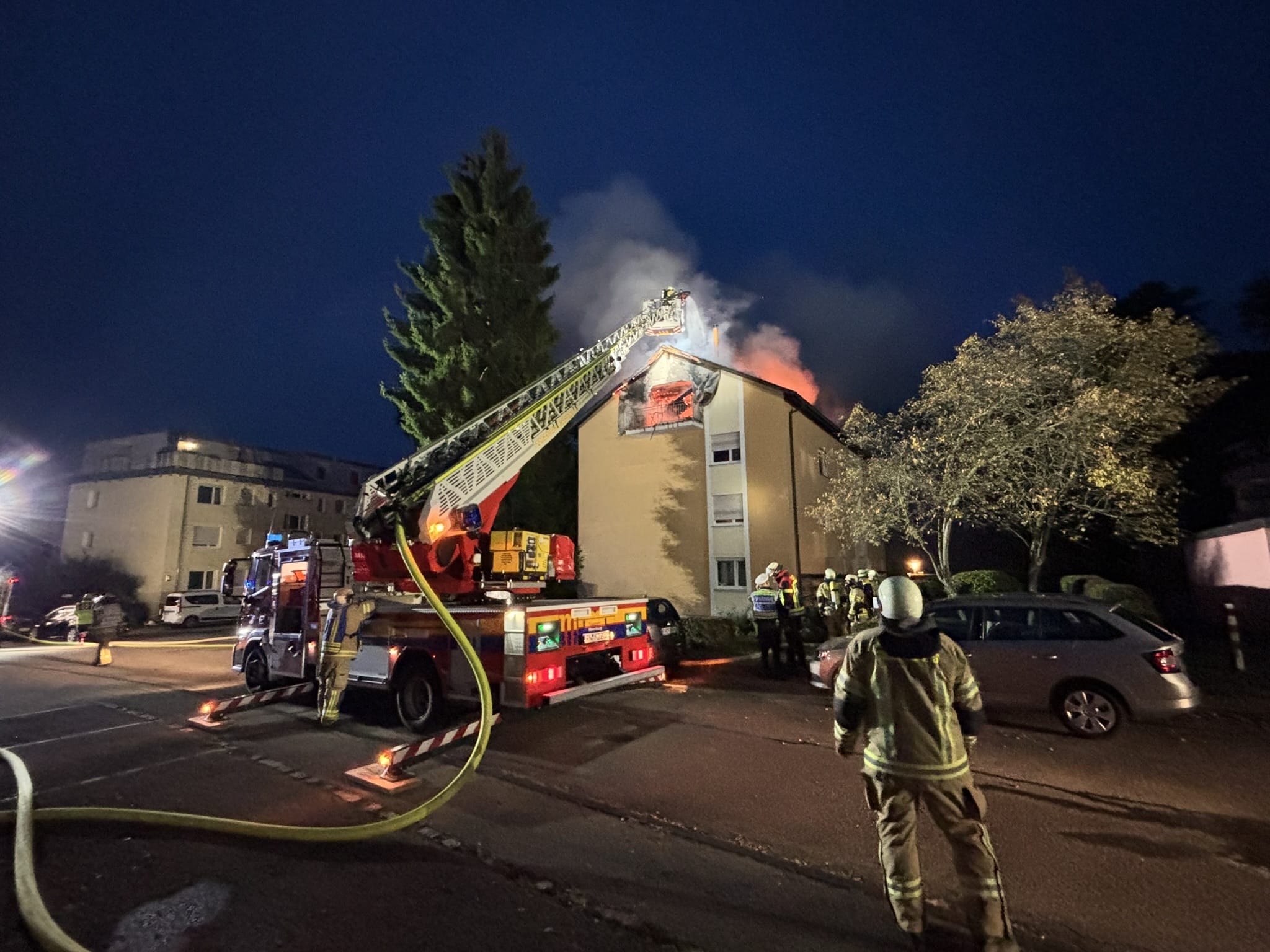 In den Morgenstunden des Dienstages (23. September 2025) kam es in der Hans-Dieter-Straße in Meersburg (Bodenseekreis) zu einem Brand einer Dachgeschoßwohnung in einem Mehrfamilienhaus, der sich schnell ausbreitete.