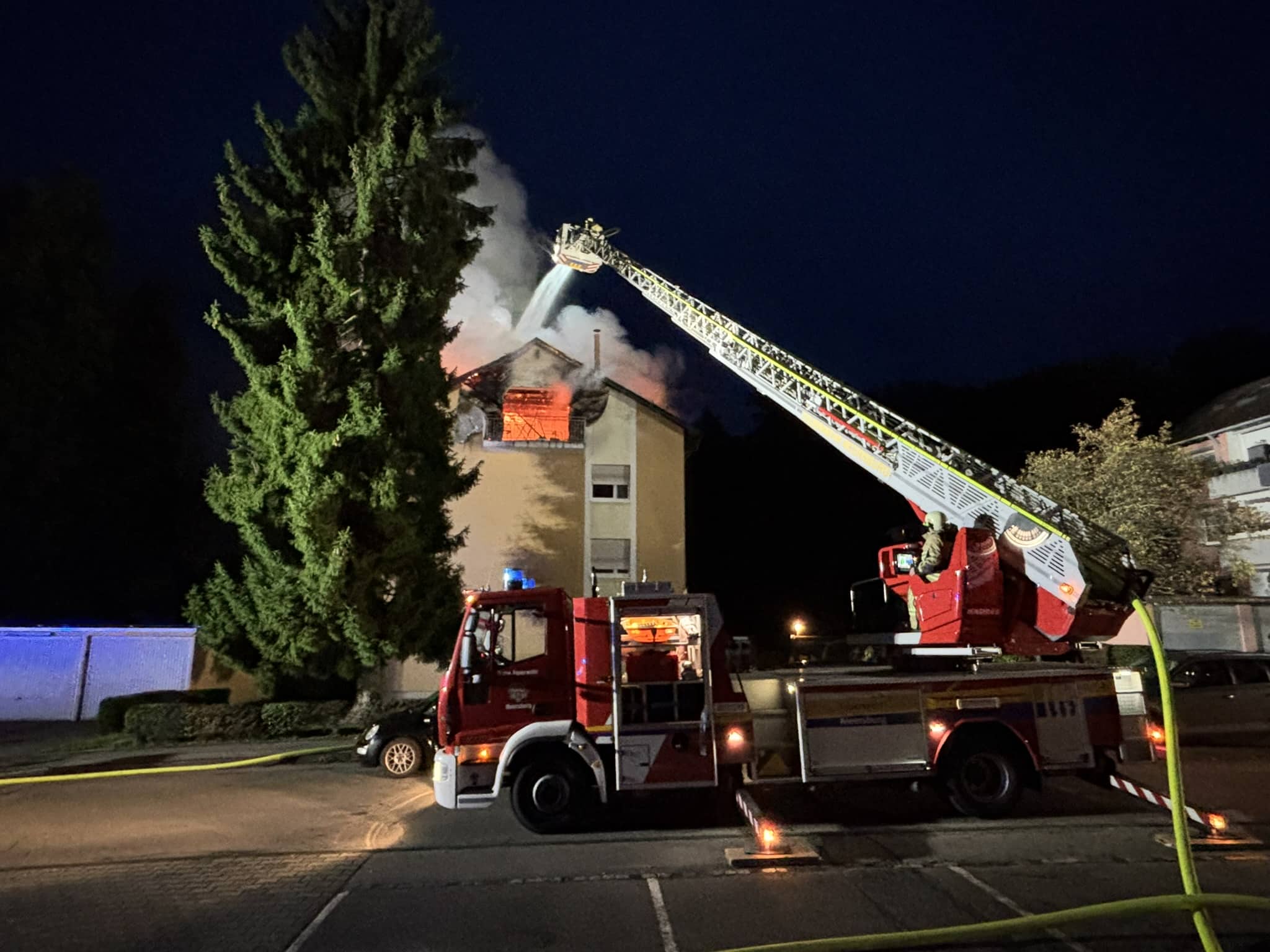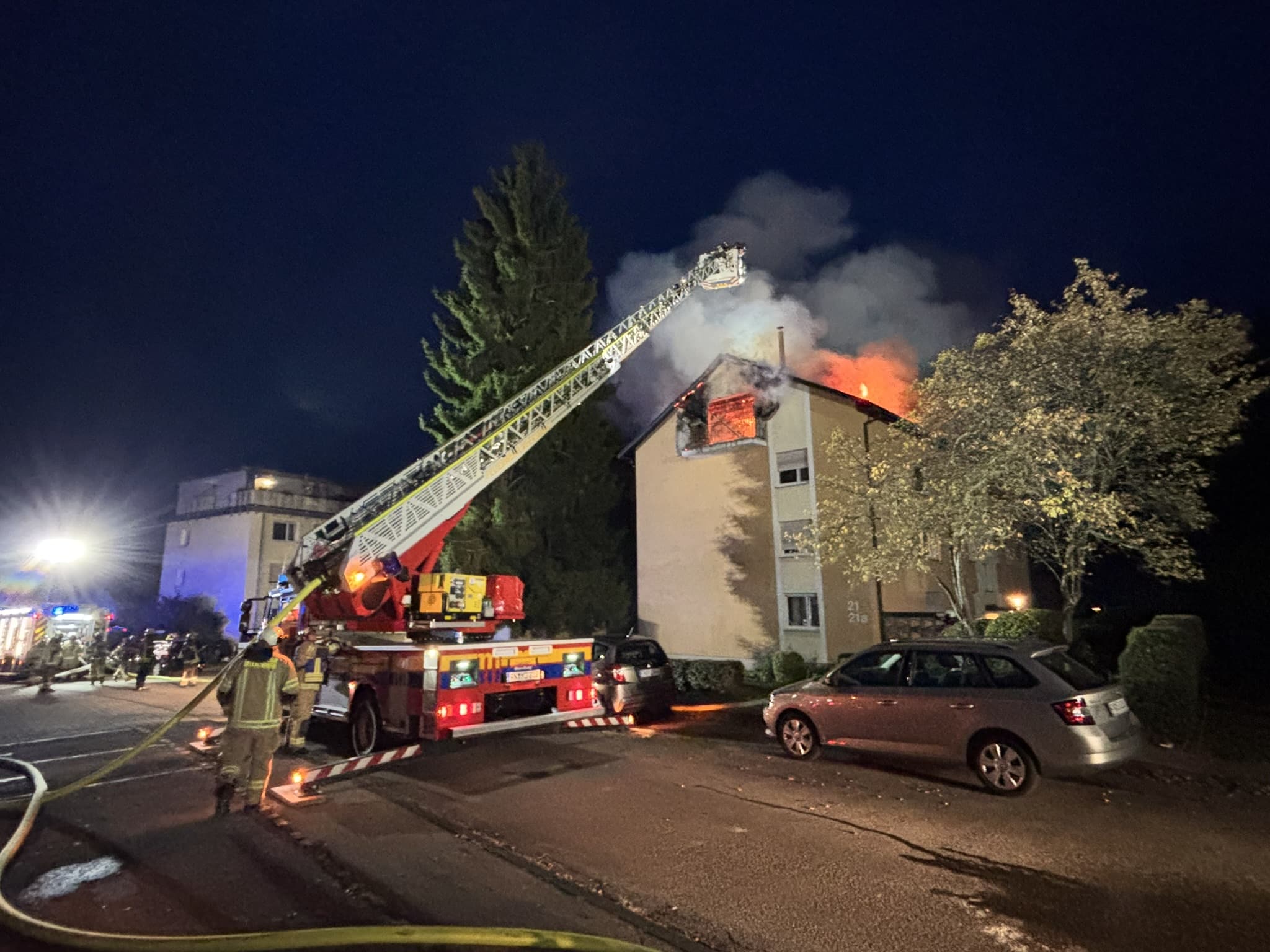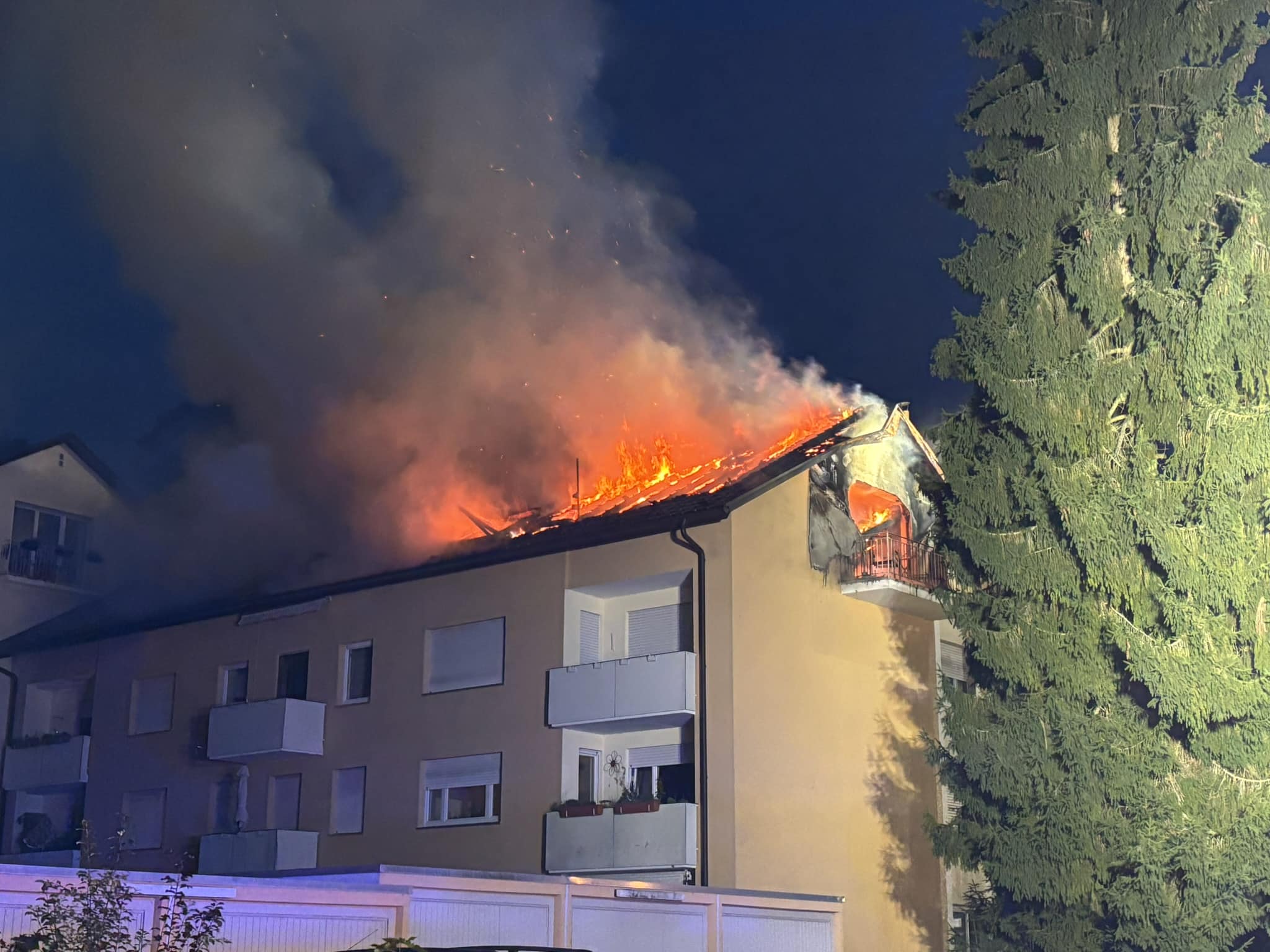 In den Morgenstunden des Dienstages (23. September 2025) kam es in der Hans-Dieter-Straße in Meersburg (Bodenseekreis) zu einem Brand einer Dachgeschoßwohnung in einem Mehrfamilienhaus, der sich schnell ausbreitete.