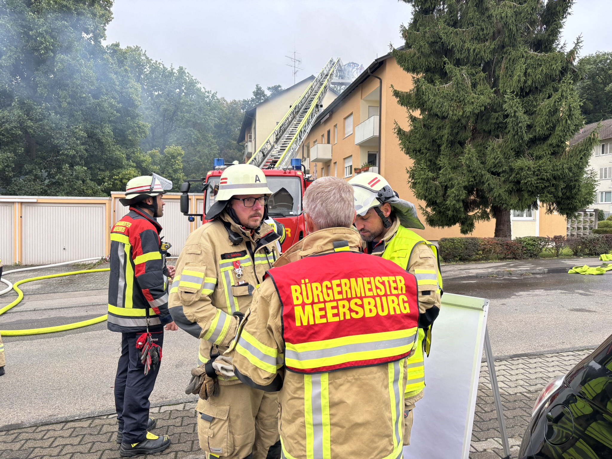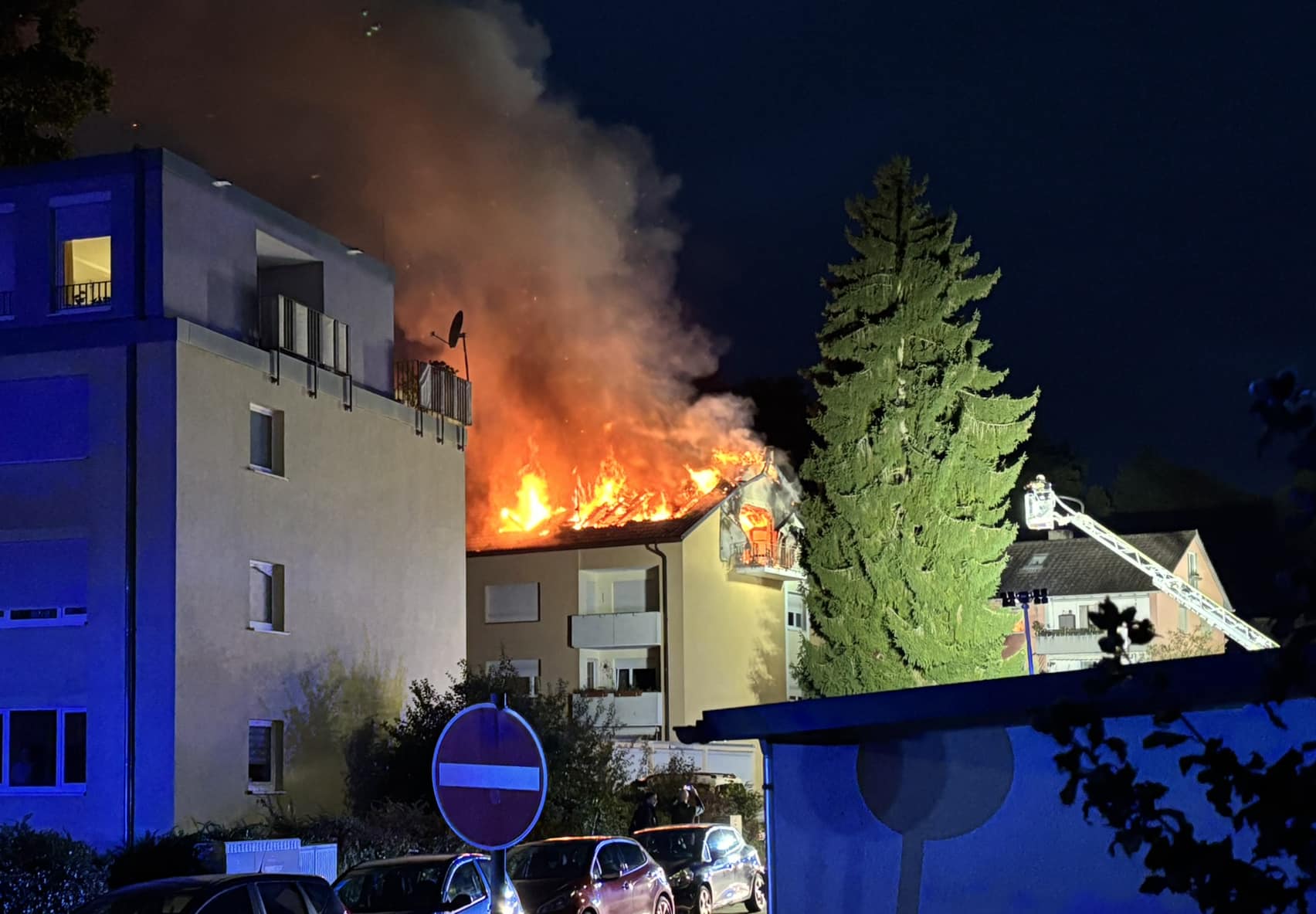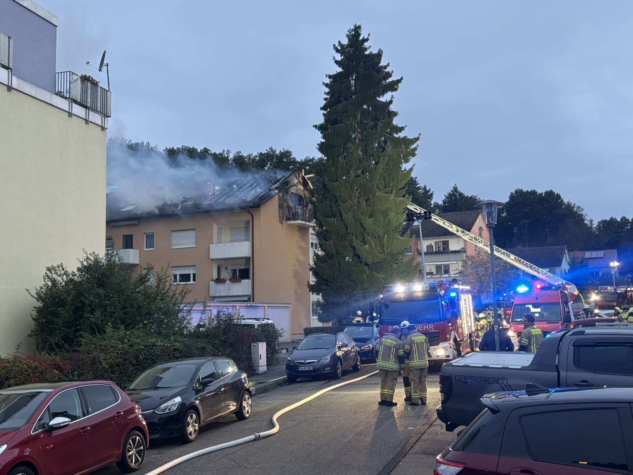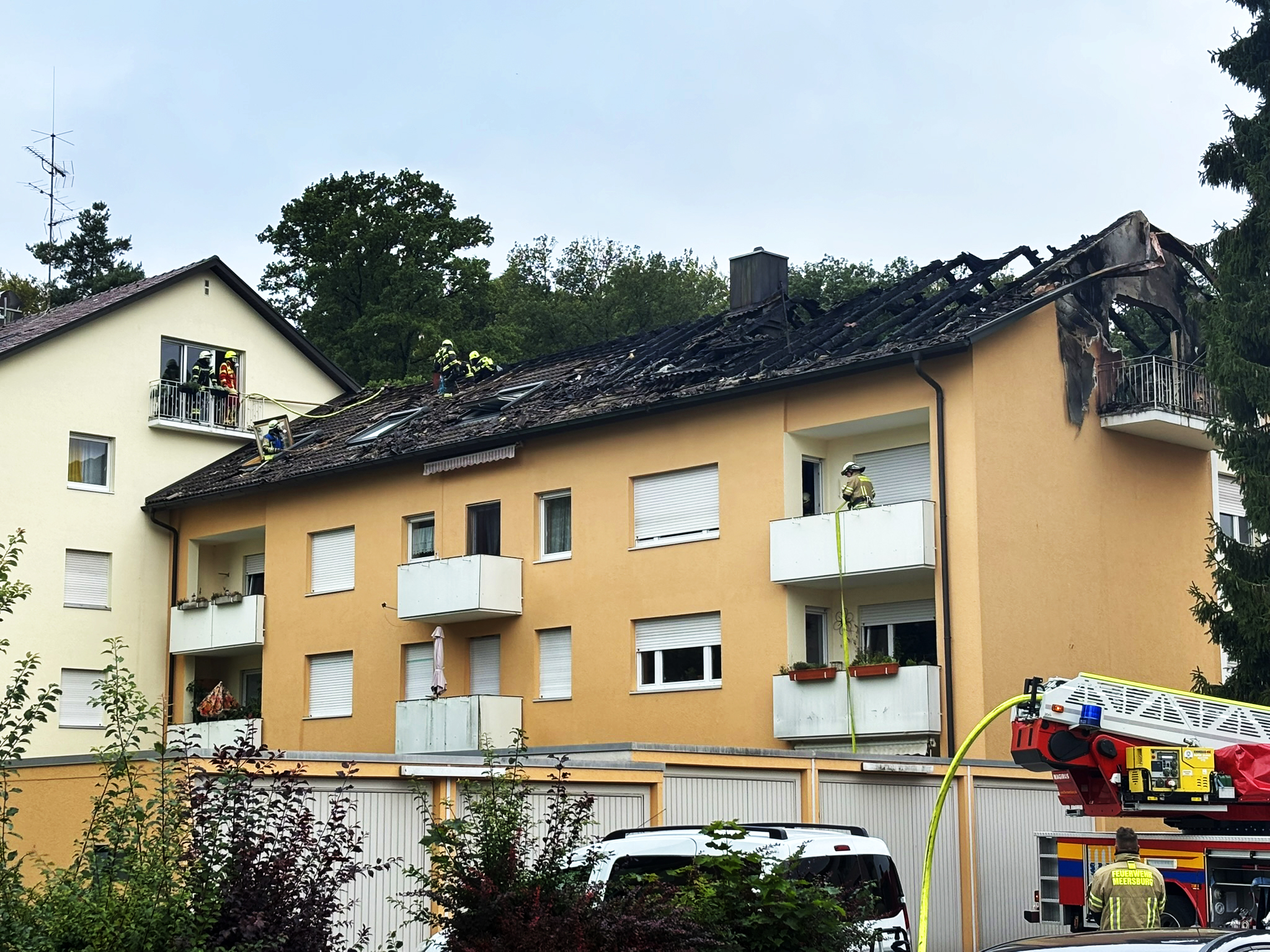 In den Morgenstunden des Dienstages (23. September 2025) kam es in der Hans-Dieter-Straße in Meersburg (Bodenseekreis) zu einem Brand einer Dachgeschoßwohnung in einem Mehrfamilienhaus, der sich schnell ausbreitete.